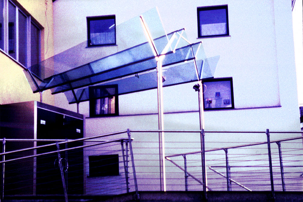 Concept: As a canopy for a church building in Aachen, glass tiles were designed by 3*5 m as a self stabilizing system.