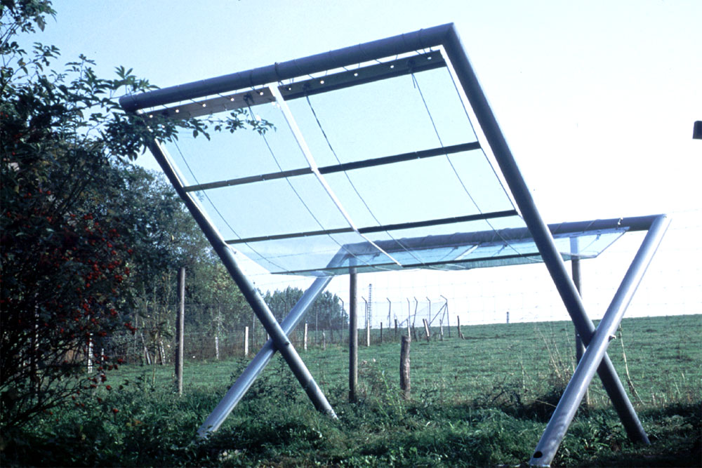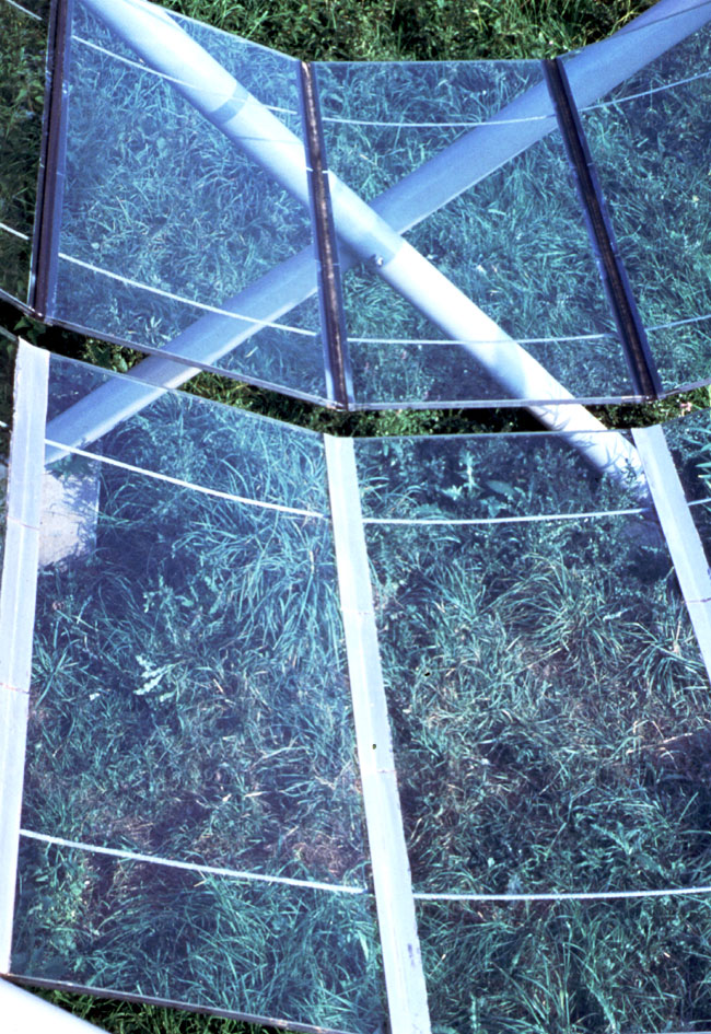 The project was executed on a clay ground in the testing area applying architectural theory for Prof.DR.M.Speidel and was intended to be like some kind of a shelter there (Fig 01. Over view of the glass net) .