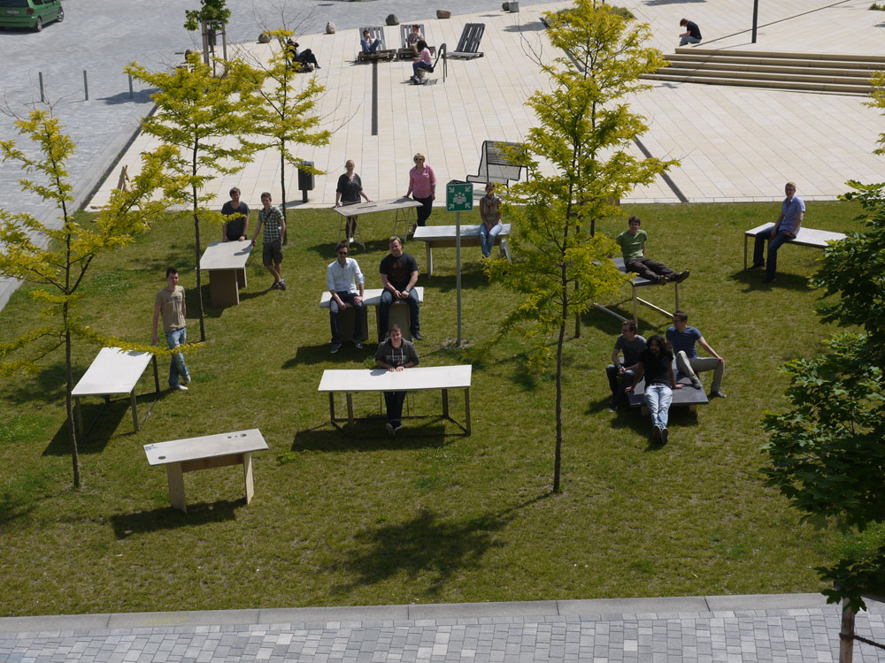 For the realization of the designs, they all had been casted professionally in precast plant in Beverungen, and at the end of the project, an exhibition were held and all of this ideas were presented so that each design found a place and a use.