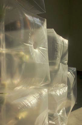 Different types of walls or display stands can be built by creating modular air-filled boxes with a plug system. The system could also be used as temporary partition walls, to protect certain areas from others, for example. The plug system can be realized by using air-filled tubes with valves, similar to bicycle