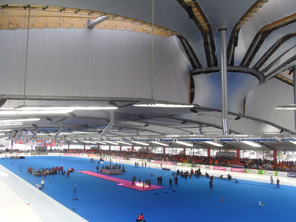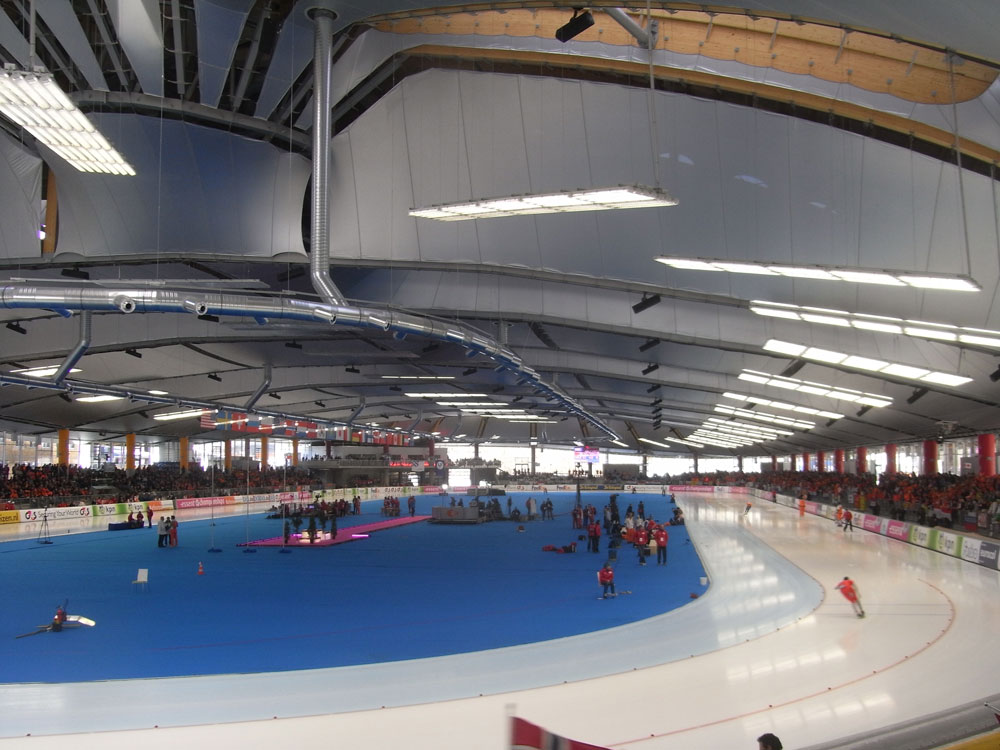 The existing speed skating track and hockey rink was covered and enclosed, to ensure even under unfavourable external conditions optimal training and competition conditions. It must be noted that the stadium is normally used by the German national team for training purposes as well as by other international teams. It is also used for popular sport events with more than 150 people. Events like the World Cup and Ice Speedway with 3,500 spectators a day and the Speed Skating World Cup with 7,000 spectators in one day are an exception.