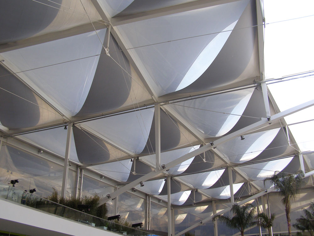 Due to the location of the site – Lisbon with above 1600 kWh/m² solar radiation and an average yearly ambient temperature of about 17°C, this was a challenge for the design team. The solution is different coatings on specific parts of the cushion roof, allowing low energetic north diffuse light to enter the mall, but provide shading from the direct sun. The mall area will be conditioned with a floor cooling system in combination with jet nozzles.