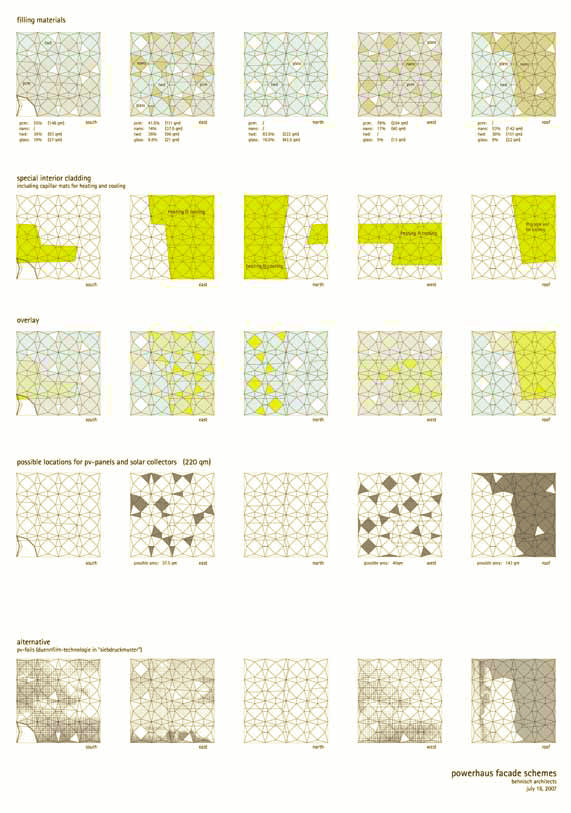 This building was developed for the campus of IIT in Chicago with the purpose of highlighting new and future technologies. To counteract the problem that, upon completion, the building would no longer be a house of the future, the façade was developed as a load-bearing frame that can accommodate changing new and innovative components. In a first version, functional components have been arranged across the entire façade depending on the requirements of the interior space and the geographic orientation. In this example, functional panels for solar power and collector surfaces, for example, are mounted on the southern part of the façade; while the northern façade is equipped with highly insulated or translucent elements.