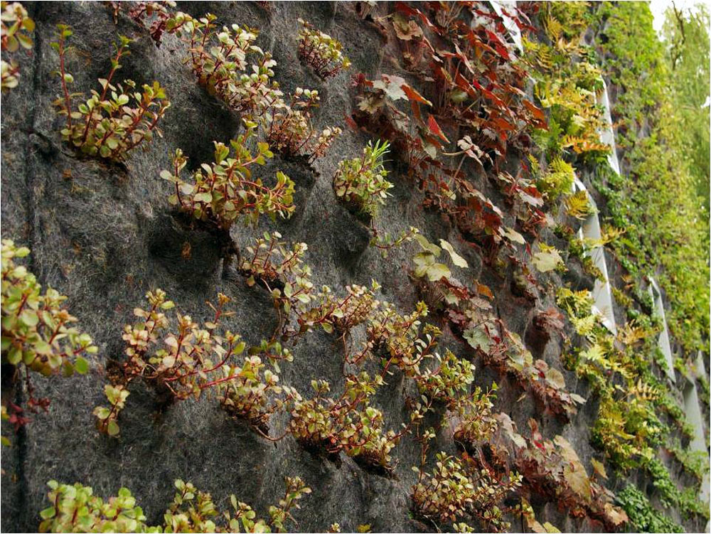 The vertical green façades generate the main appearance of the pavilion. The façade was equipped with different species of plants, alternating flowering periods, varying with the seasons of nature. The construction has been widely published and quoted.
