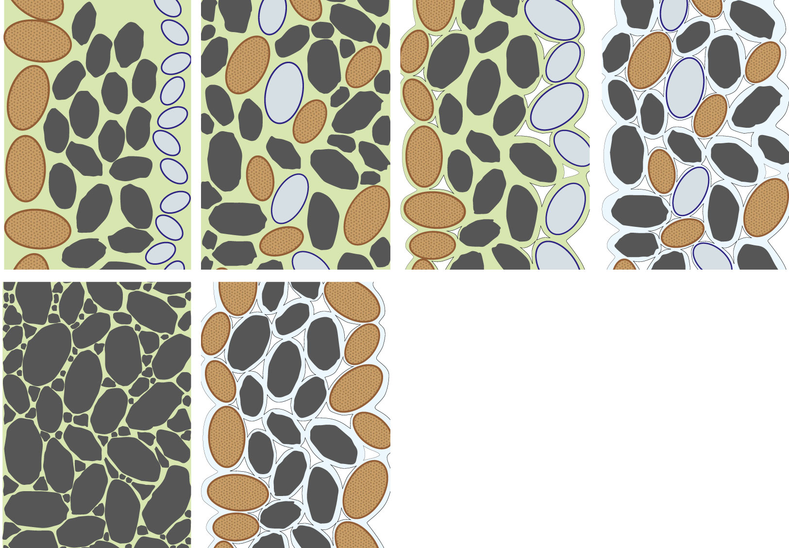 Typically, concrete consists of aggregates and cement paste. The aggregate has a significant influence on the performance capability of the final material. The innovative concept presented here can enhance the functions of a wall determined by a particular combination of different aggregates. Depending on the composition, the aggregate or granulate can take on functions such as load-bearing, insulating, and heat storage, amongst others. Bonding the individual components can be done in two ways: by adding an additional binding agent or by activating an already present enclosing binder.