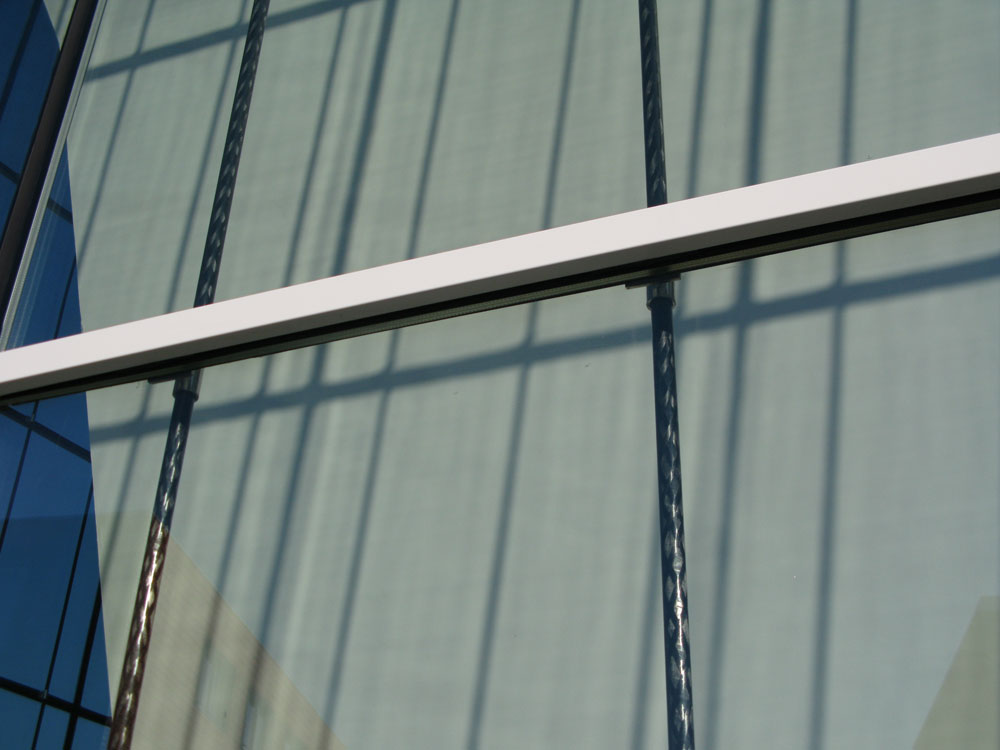 Placing the pre-stressed cables to pass through the glass panels spacers was an innovative complex design, which needed several tests in matter of panel size, details and material suggestions.