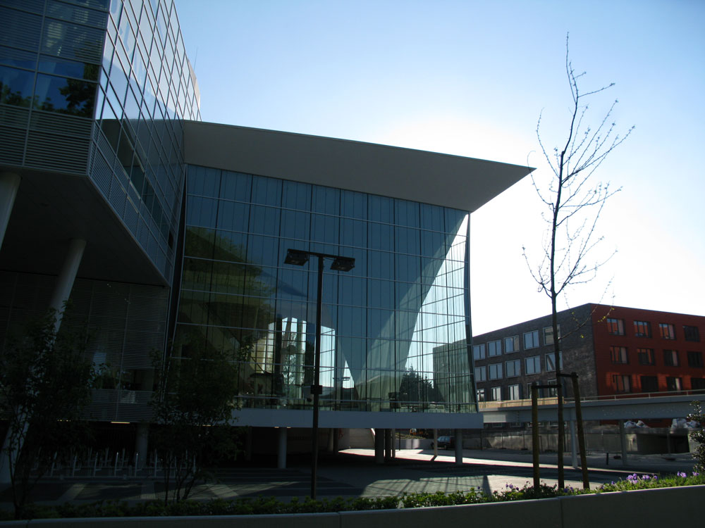 The world’s thinnest glass façade at the INHolland School of Applied Sciences in Delft was driven by the desire for innovation. It is known that any glass façade with large spans needs stabilizing systems for wind and dead loads. In an extensive experimental process a pre-stressed cables were developed for taking up the horizontal wind forces while a suspension rods were taking up the vertical dead load for the system. By deflection up to 300 mm in windy days the structural height is performed by the façade.