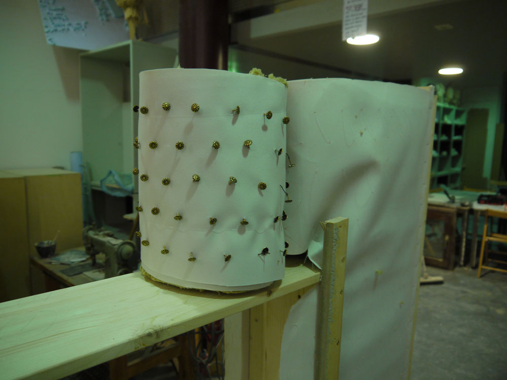To reach the goal of rolled form work, the wooden form work plates will be replaced with textile layers. The fabric is connected to each other in order to control the deformation caused by the pressure of the concrete during the pouring process by replacing the normal steel tie with nylon strings. It should be noted that the skin, which is facing the insulation layer will not allow the water from the fresh concrete to go through to allow the insulation layer not to be wetted to maintain its insulation properties.
