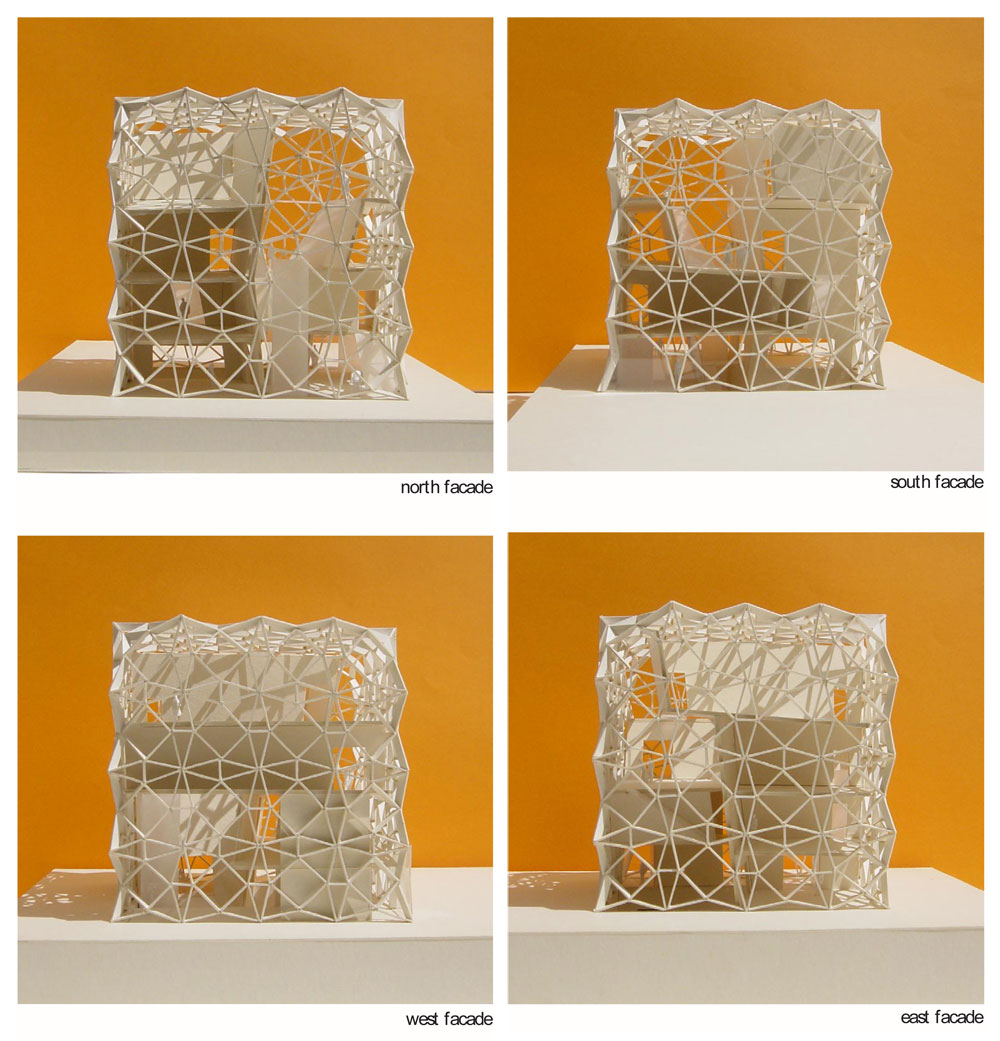 The house of the future is designed by Behnisch Architects to be the first fully sustainable building on Illinois Institute of Technology (IIT) in Chicago. The outer envelope for (HOF) provides the required protection against outer climatic influences. The envelope considered as multi-layer system, which easily adjusted to different needs and consists of triangular elements, which is considered as a fully stable geometry and self-supporting. The structure is built of fiber-reinforced concrete, thus greater performance could be accomplish in comparison to conventional materials.