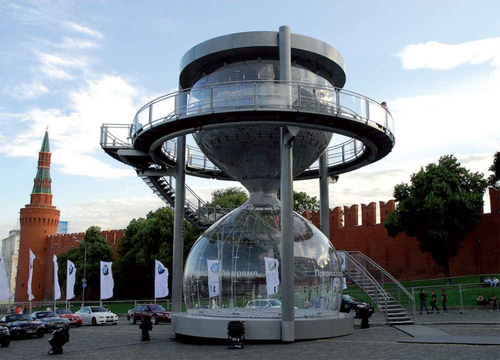 On the occasion of the new BMW 7 Series launch in Moscow, the advertising agency wanted to present the car in a 40 ft high hourglass.