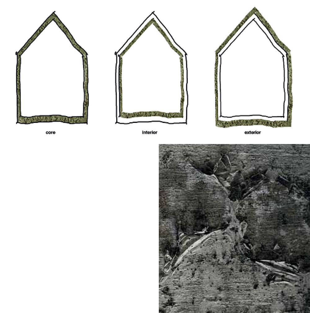 How simple would it be if we could eliminate our waste by simply throwing it into parts of our building? The wall would digest and make use of the waste. A pizza box including leftovers enters the wall, is crushed and then blown into a cavity that is either inside or outside the wall. The moisture of the waste develops mold which spreads throughout the entire volume of the cavity. The mold generates heat which contributes to the passive thermal capacity of the wall. Those daring to have a look inside the cavity would be able to observe the chemical process, and for even greater impact the cavity’s skin could be transparent.