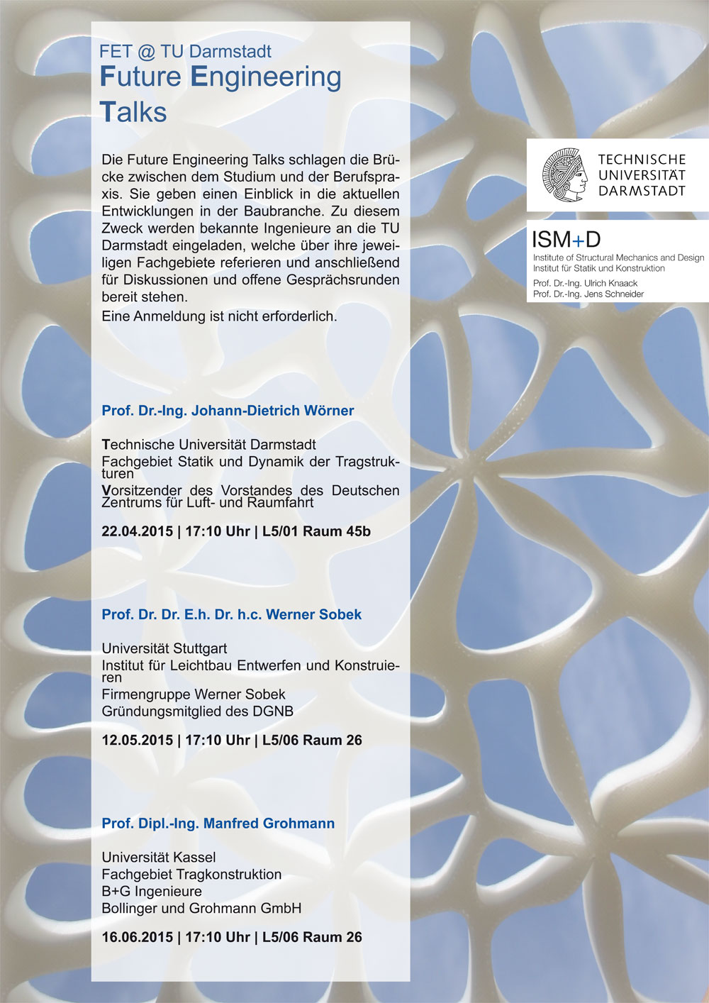 Future Engineering Talks intend to fill the gab between academic studies and practice world. They give an overview about the actual developments in differential building sectors.