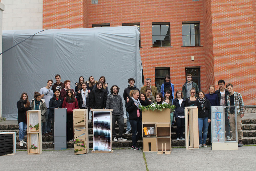 The assignment for course was: Find three functions for a façade and develop a suitable end-of-life concept! 45 international students worked one week intensively on their façade mock up following different approaches. While one group assembled various products from different material groups easily disconnect able (under 5 minutes!) another team used only synthetic material with comparably robust connection. Contrary concepts which show a suitable way to include the end of life into the façade design process.