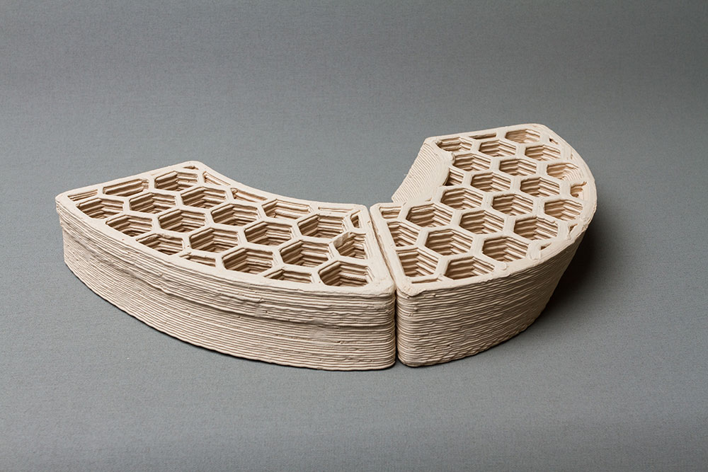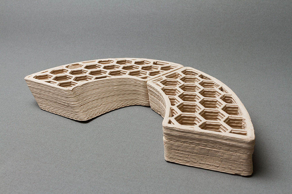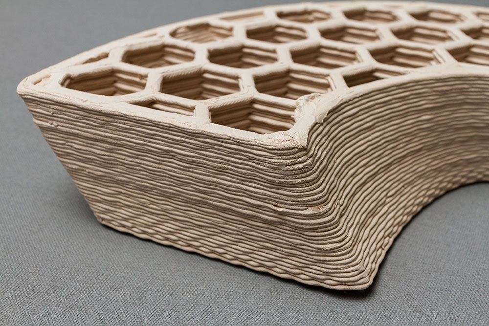 When you think of printing one material façades it looks like the sky is the limit and the options are endless. In his research he will focus on the real products that can be made with this technology. Next to those real solutions, attention needs to be paid matching material and production technology. That is why one of the next steps involves testing the overall performance of the printed stoneware.