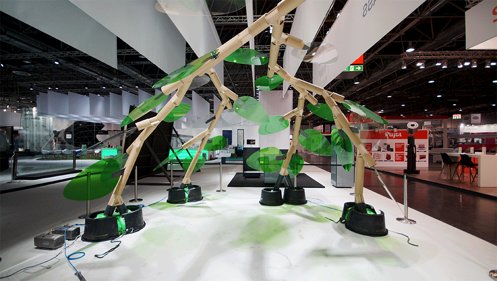 The idea behind the „Branching Out“ pavilion of the TU Darmstadt team is to recreate natural branch structures including leaves. The curved leaf modules are particularly striking. They consist of a laminated safety glass laminate made of chemically toughened thin glass panes 1 mm thick. The glass is pre-curved and laminated with an intermediate PVB layer. In order to emphasize the optical perception of the sheet in addition to the geometry, the intermediate layer is colored green.