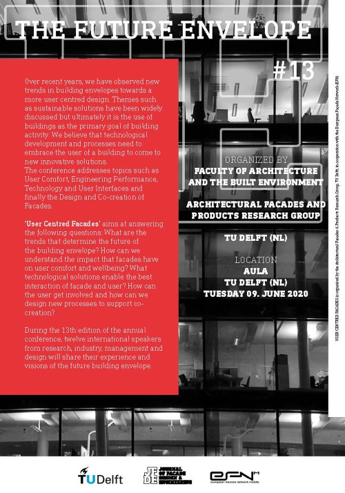 You are cordially invited to the 13th edition of The Future Envelope – Conference on Building Envelopes, to be held on Tuesday 9th June 2020, in the AULA of the TU Delft (NL).