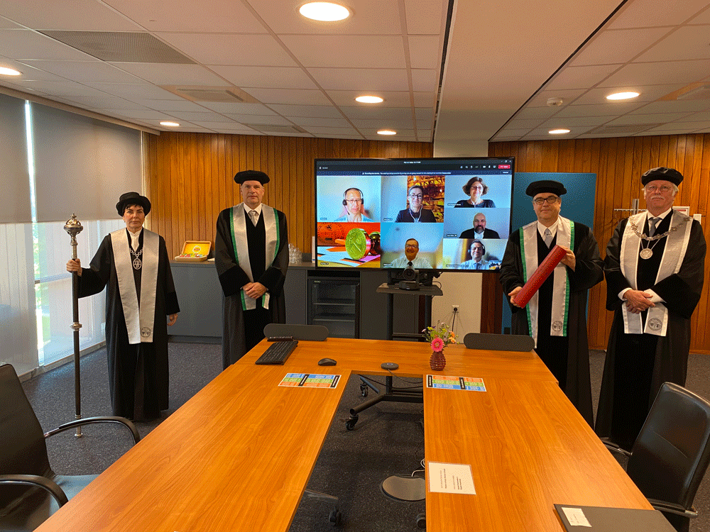 Jason Vollen successfully defended his PhD, titled “Countercurrent Heat Exchange Building Envelope Using Ceramic Components” at TU Delft on September 15th. As we are still in the corona mode, this theses was defended via an hybrid layout with the promoters Tillman Klein and Ulrich Knaack and the rector of the TU Delft being present in Delft and the committee as well as the candidate acting digitally. Well done, congratulations!