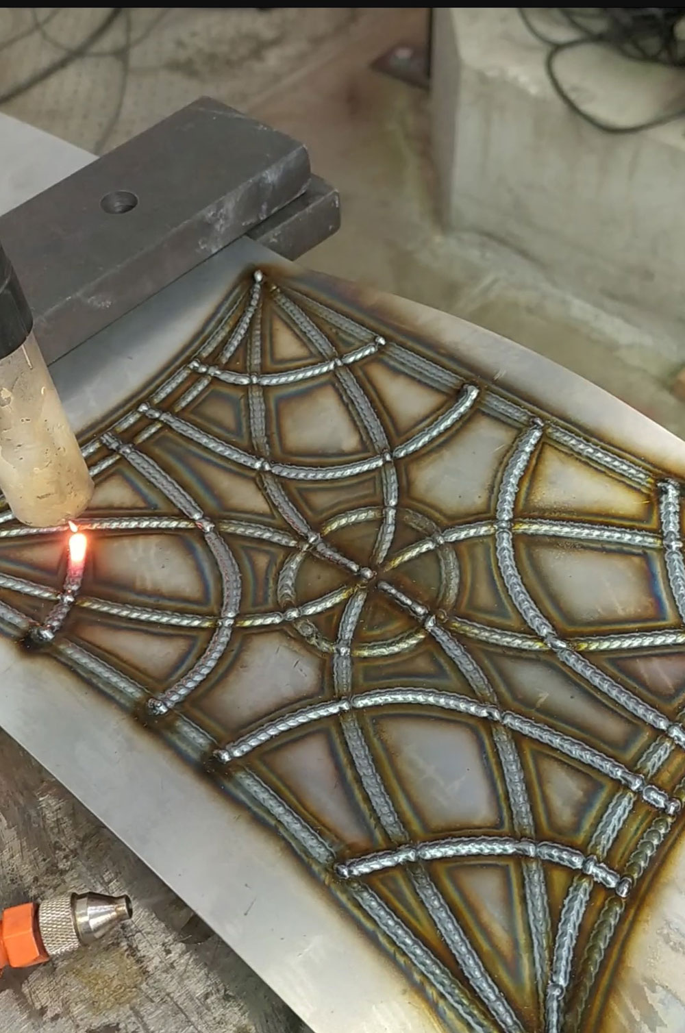 Wire Arc Additive Manufacturing is a method for producing three dimensional objects in steel through the controlled deposition of weld material. This research, done by Chris Borg at ISM+D / TU Darmstadt, looks at the possibility of combining welded material with thin sheet metal as a means of reinforcing and detailing free-form façade elements.