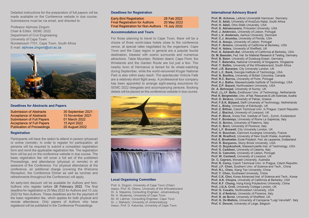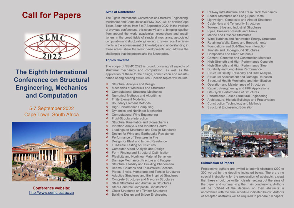 As part of the Eighth International Conference on Structural Engineering, Mechanics and Computation in Cape Town, South Africa in 09/2022 we are pleased to announce a special session AM Steel. Please apply with your abstract till end of September 2021.