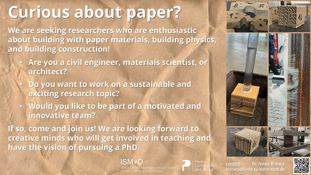 We are searching for researchers who are enthusiastic about building with paper materials, building physics, and building construction!