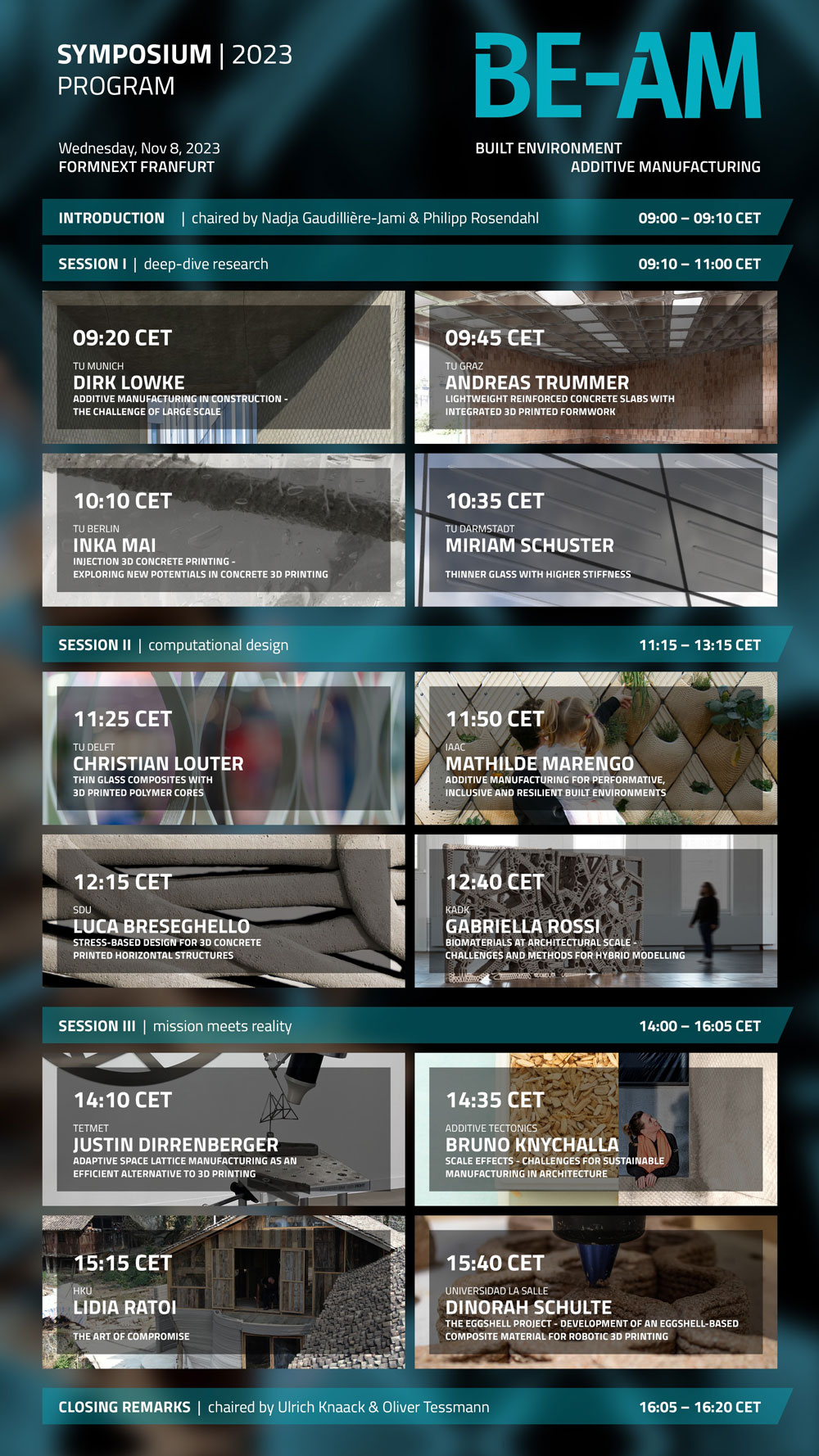 Please feel invited to our annual conference and exhibition for 3D printing in the built environment! In cooperation with formnext / Messe Frankfurt we are featuring the technology for architecture and engineering in the built environment.