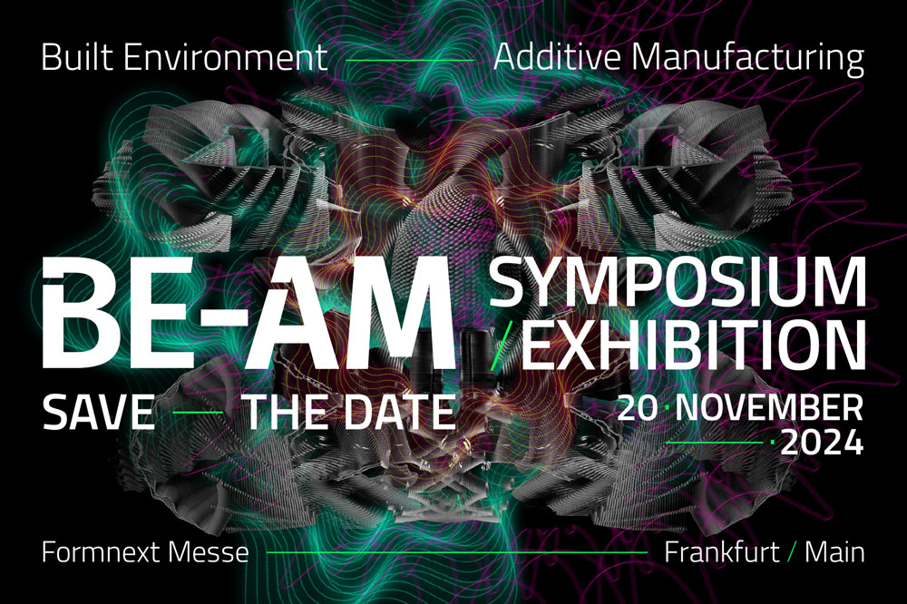 BE-AM | Built Environment-Additive Manufacturing is a network, annual symposium and annual exhibition that brings together experts in 3D printing and additive manufacturing from industry, academia, design and architecture. It is a platform to share and discuss ideas, projects and technologies. The event is hosted by the Formnext fair in Frankfurt and organized by the Digital Design Unit & the Institute of Structural Mechanics and Design from the Technical University of Darmstadt.