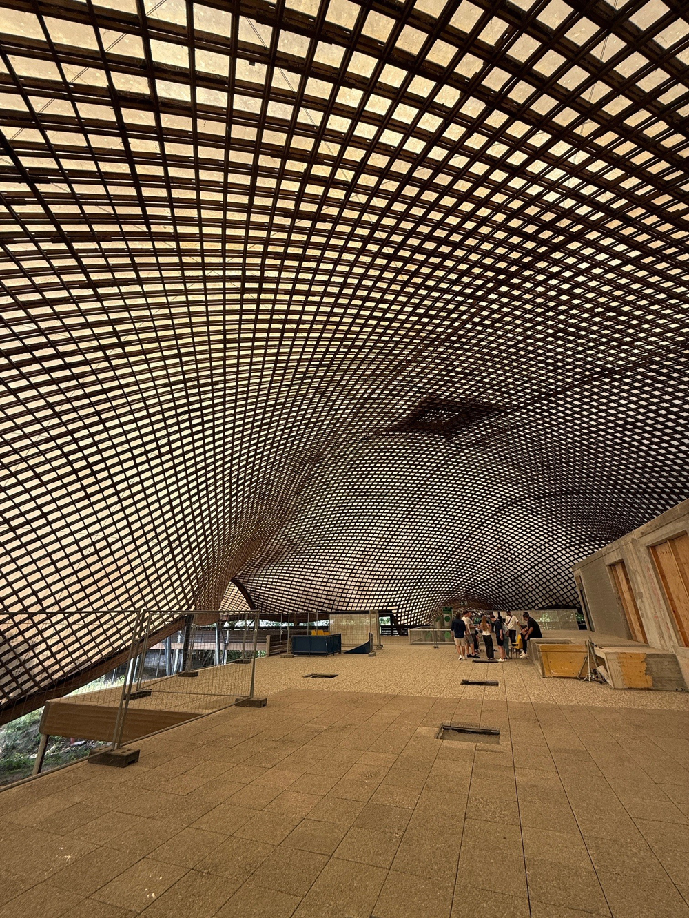 When Frei Otto designed the Multihalle in Mannheim in the late 1970s, he wasn’t just building a venue for a garden exhibition—he was redefining what architecture could be. The sweeping timber lattice shell was groundbreaking: light, fluid, and designed with minimal material yet maximum impact. It was a façade that felt alive, blending engineering precision with organic form.