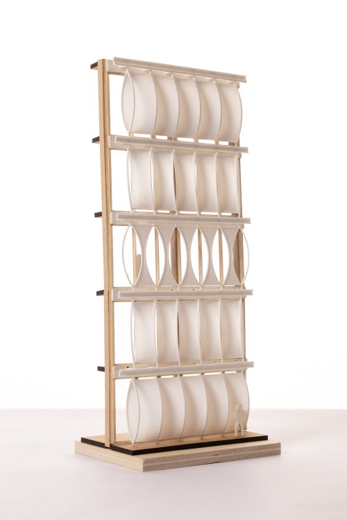 The result is a dynamic shading system that breathes with the building— responsive, and beautifully rhythmic. The students not only designed and simulated the system but also built it 1:1 in the Bucky Lab, proving that kinetic architecture doesn’t always need a plug.