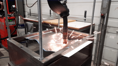 One of the biggest challenges with #WAAM on thin sheet metal is thermal deformation. The videos illustrate this effect on a thin steel plate. As each weld bead and layer is deposited, localized heating and cooling cycles induce significant thermal stresses, resulting in deformation of the plate.