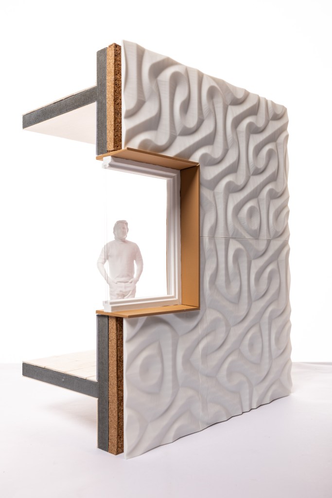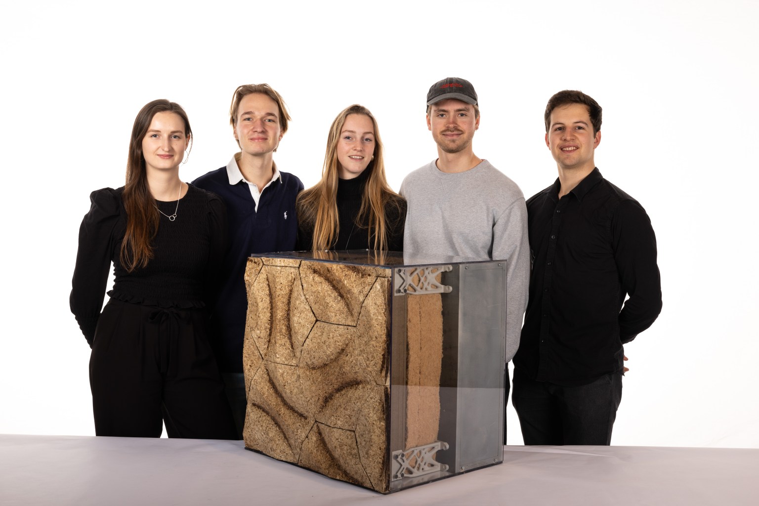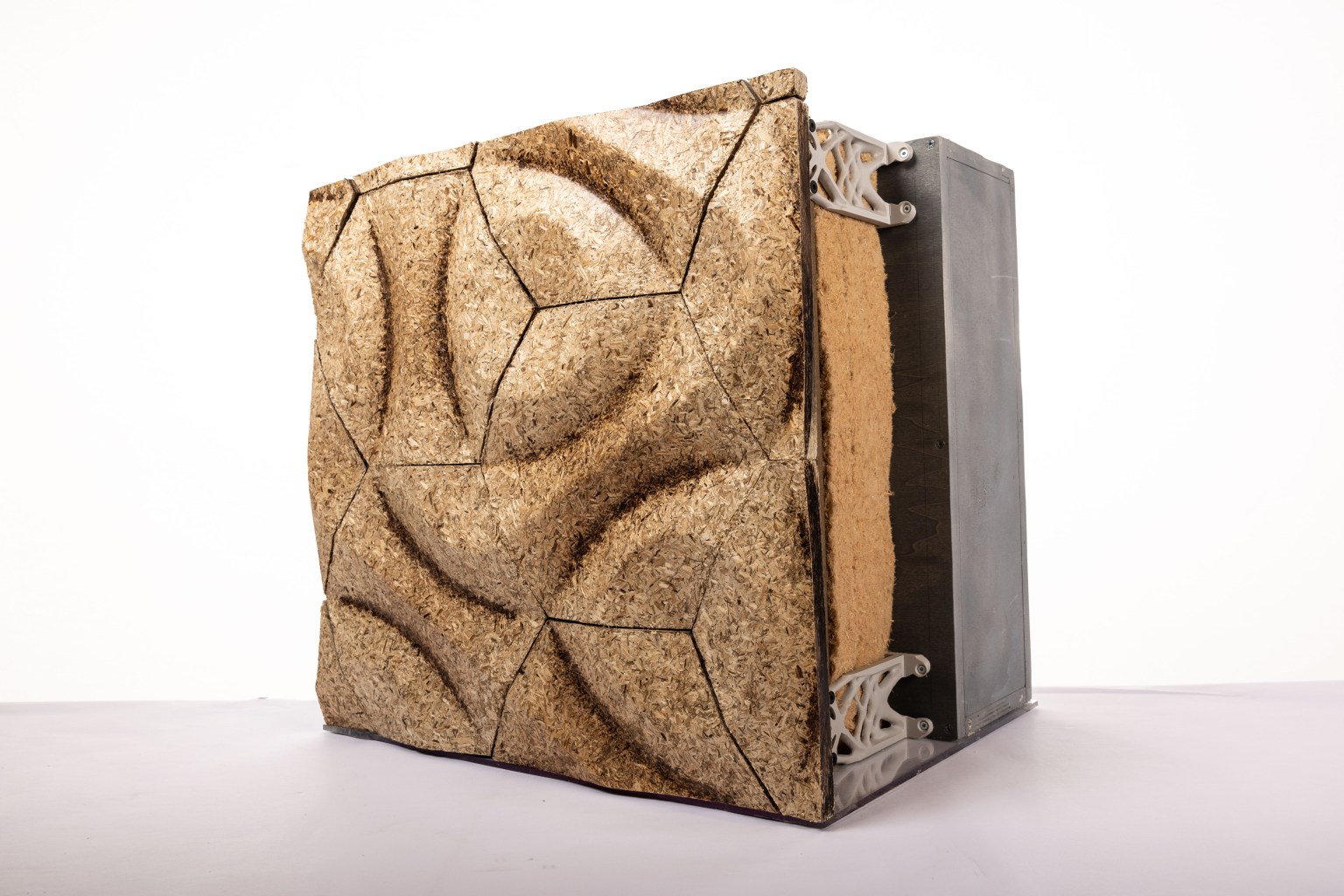 Hemp was selected for its rapid renewability, carbon absorption capacity, and strong insulation performance. Through material research and collaboration with industry partners, the student team developed a hexagonal façade panel system combined with a biobased substructure. The prototype demonstrates how biocomposites can move beyond conventional cladding solutions, both technically and visually.
