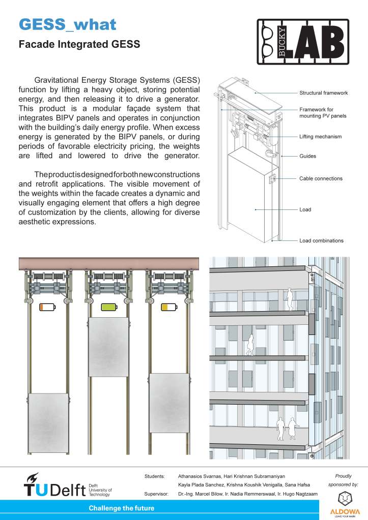 At TU Delft’s Bucky Lab, a student team explored a concept that feels almost too simple to be true: using gravity as a battery. The project GESS_what translates Gravitational Energy Storage Systems (GESS) into a façade-integrated solution – turning the building envelope into an active energy device.