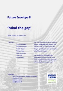 /// Future Envelope 8 ‘Mind the Gap’ This one-day conference will address gaps in knowledge and process and consider how we can improve the design, specification and construction of building envelopes. The conference is intended for graduate engineers with up to