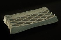 ///Ceramics in an AM process | Freeform surface This free form brick was printed using a continuous flow. The advantage of a continuous extrusion path, controlled by g-code, is that the filament is not interrupted, which allows a faster print