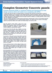 /// Complex Geometry Concrete panels Complex Geometry GFRC in landmark building and development of new design solution which will enable more complexity with GFRC. Project leader: Thomas Henriksen, M.Sc Eng Executed by: Thomas Henriksen Period: Nov 2010 – Nov 2016