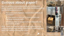 ///Curious About Paper? We are searching for researchers who are enthusiastic about building with paper materials, building physics, and building construction! Are you a civil engineer, materials scientist or architect and want to work on a sustainable and exciting research
