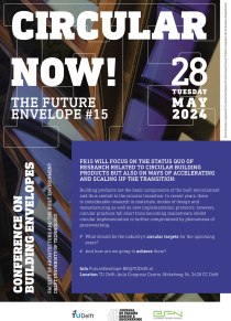 ///Future Envelope 15 Please feel invited to join our 15th Future Envelope at TU Delft – an international facade conference at the Faculty of Architecture and the Built Environment, featured by the Architectural Facade + Product research group. And the